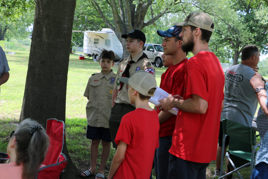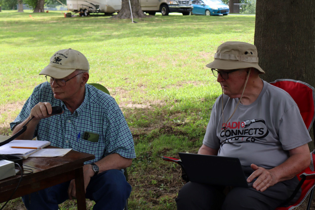 Interested Scouts learning about Field Day A Great Team Jeff KAØARW and Loren KFØQAL on 40 Meters Roxann KZØIMO at the information boothVic KEØSYO Refreshing after his turn at the MicThadd KFØPXE and Don KFØMZG listening for QSO’s John KFØLNZ working the bands in A/C comfort
