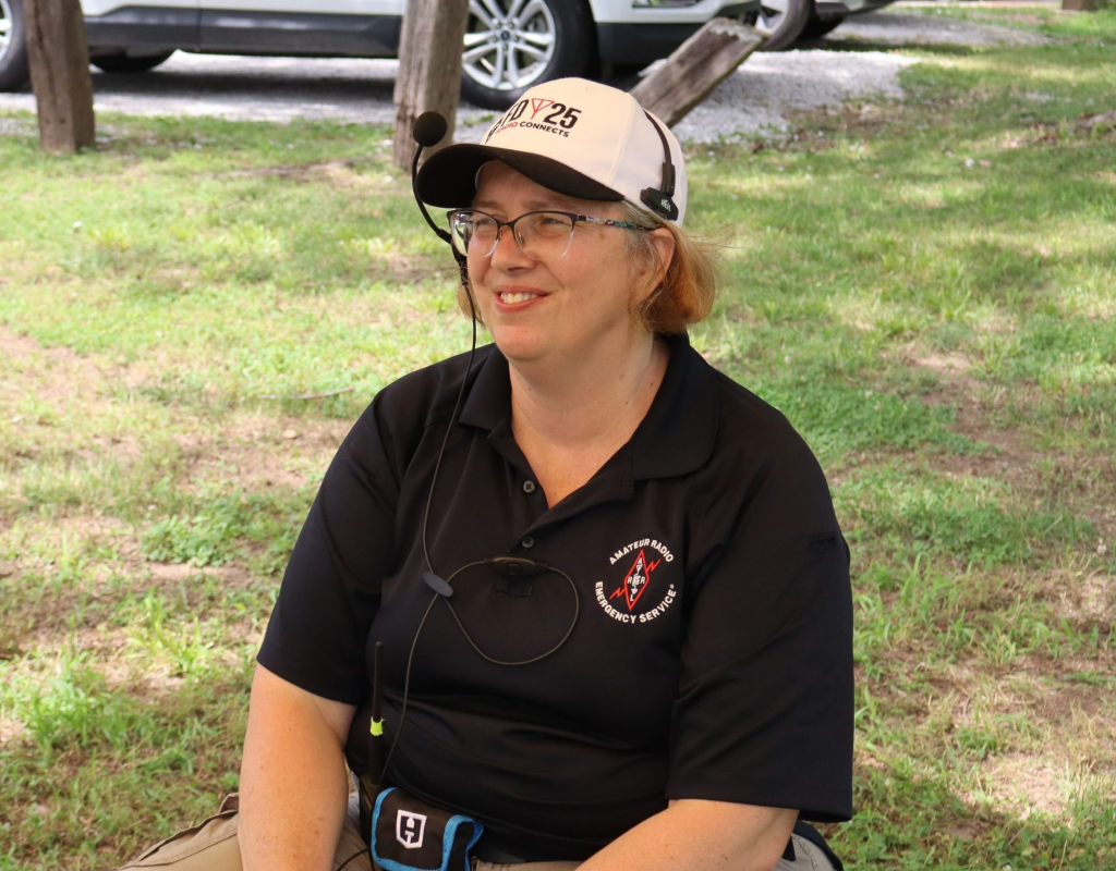 Pavillion at Doniphan County FairgroundPulling in with StationNight ViewRick – NJØP with reporter Mary Winder from The Kansas Chief newspaper